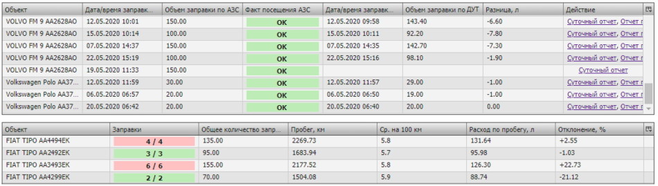 дані від датчиків палива порівнюються з обліком на АЗС;